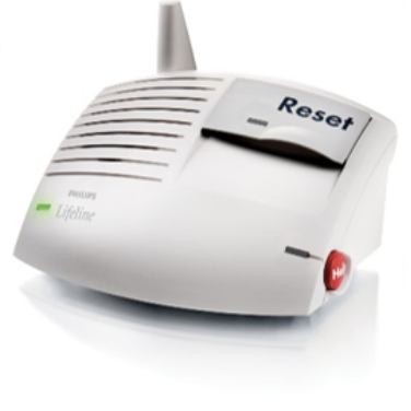 A Regular Lifeline Communicator that is connected to an active telephone jack and electrical outlet. This type of unit allows you to connect your existing phone into back of the Lifeline unit so that your phone works through the Lifeline unit.